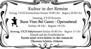Kultur in der Remise 2023: 1.9 – 3.9. 2023