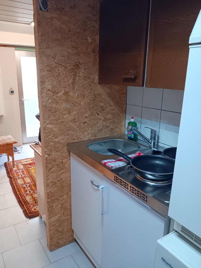 Eine kleine Küchenzeile mit allem Notwendigen zum Kochen ist ebenfalls vorhanden. Das Badezimmer ist mit einer Dusche ausgestattet. Für längere Aufenthalte stehen außerdem eine Waschmaschine und kostenloses WLAN zur Verfügung.